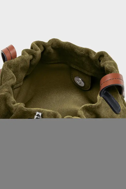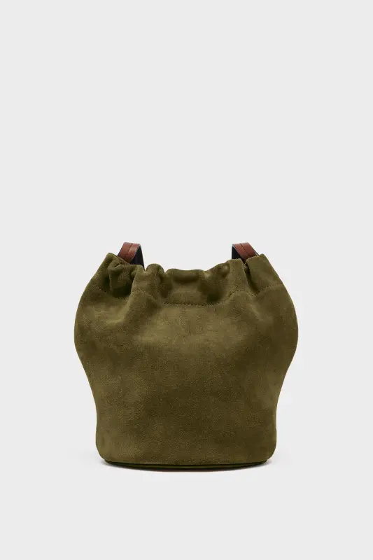 A refined take on a casual form, this bucket bag features smooth suede construction and a sculptural shape. The gathered top is secured with a drawstring fastening, while the contrast belt-inspired shoulder strap is adjustable for crossbody or shoulder wear. At the front, the Maison’s signature four stitches appear; the opposite of a label.