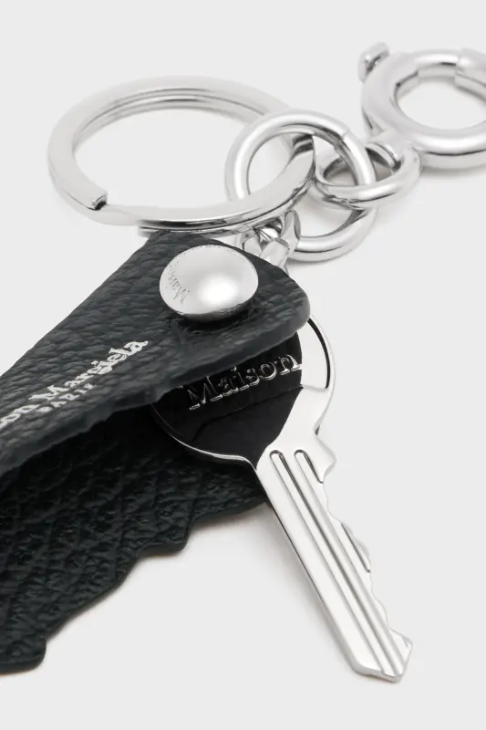 Crafted from embossed grainy leather, the keyring features a secure clasp closure and the Maison Margiela logo on the front. The stud is also adorned with the logo.