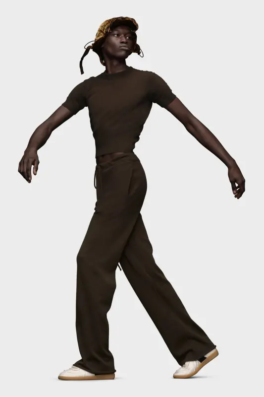 The tracksuit trousers are crafted from a soft cashmere wool blend. Designed as loungewear, they feature a ribbed waistband with extra-long drawstring for an adjustable fit. The trousers are designed with side pockets and a straight-leg, lightly pooling at the floor for a relaxed take. Maison Margiela's signature, the four stitches, appear at the back; the opposite of a label.