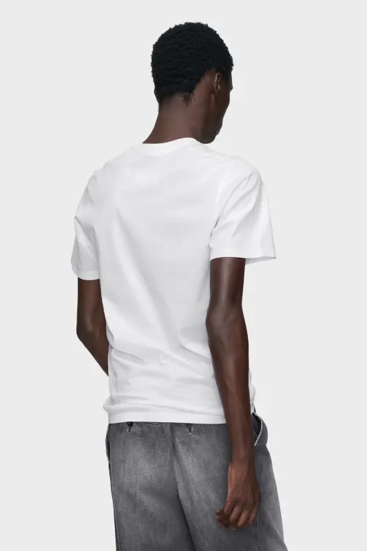This T-shirt is crafted in cotton jersey with a chest pocket detail, a clean crew neck and short sleeves. The Maison's pressed and foiled technique creates a subtle sheen across the surface, elevating the familiar silhouette through fabrication. At the back, the Maison’s signature four stitches appear; the opposite of a label.