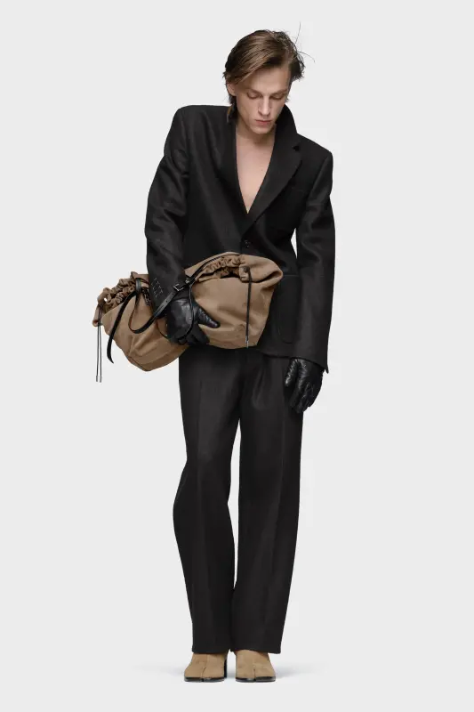 This jacket is crafted in felted wool for soft structure and natural weight. Designed with a sharp lapel and relaxed silhouette, it features oversized patch pockets and stitched detailing at the cuffs – a subtle expression of subversive tailoring. At the back, the Maison’s signature four stitches appear; the opposite of a label.