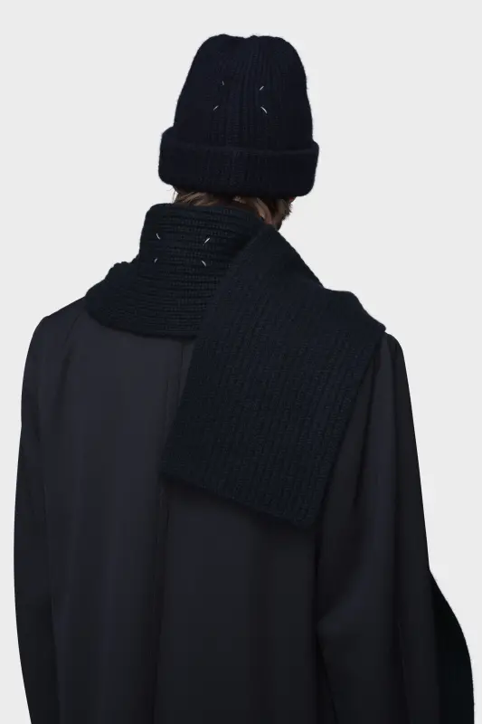 Minimal yet tactile, this ribbed scarf is crafted in pure cashmere for warmth and softness. Its clean edges and graphic proportions highlight the interplay between structure and simplicity. Maison Margiela’s signature, the four stitches, appear in the centre; the opposite of a label.
