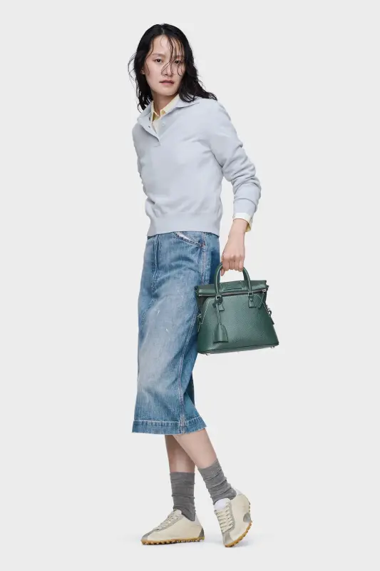 With its tab front collar and ribbed trims, this wool knit references heritage polo shapes. The silhouette features a relaxed fit, and a soft luxurious feel. Maison Margiela’s signature, the four stitches, appear at the back; the opposite of a label.