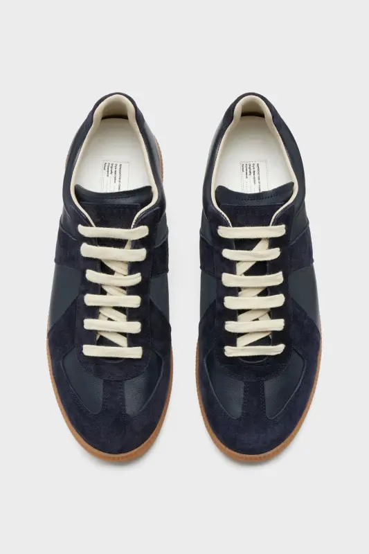 The Replica sneakers in nappa leather and suede with a honey sole. The Maison's iconic Replica sneakers are inspired by Austrian sports shoes from the seventies. Details on the Replica pairs are continually reworked in line with the season's inspirations.