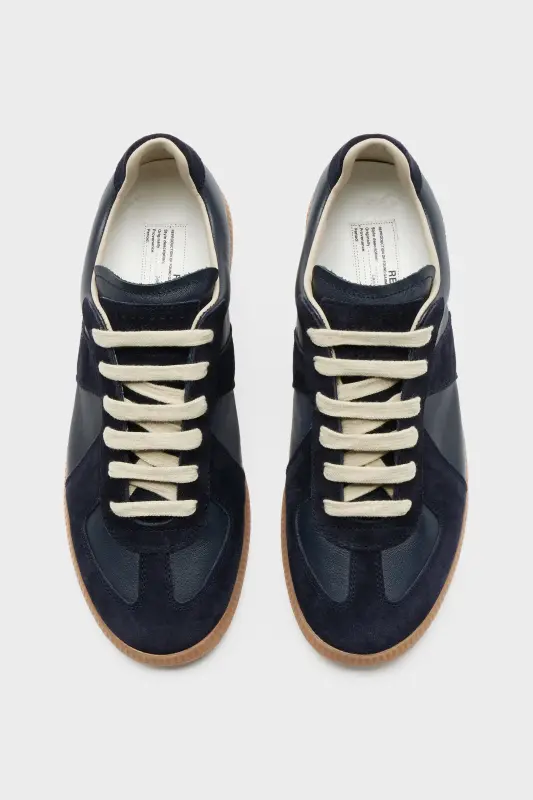 The Replica sneakers in nappa leather and suede with a honey sole. The Maison's iconic Replica sneakers are inspired by Austrian sports shoes from the seventies. Details on the Replica pairs are continually reworked in line with the season's inspirations.