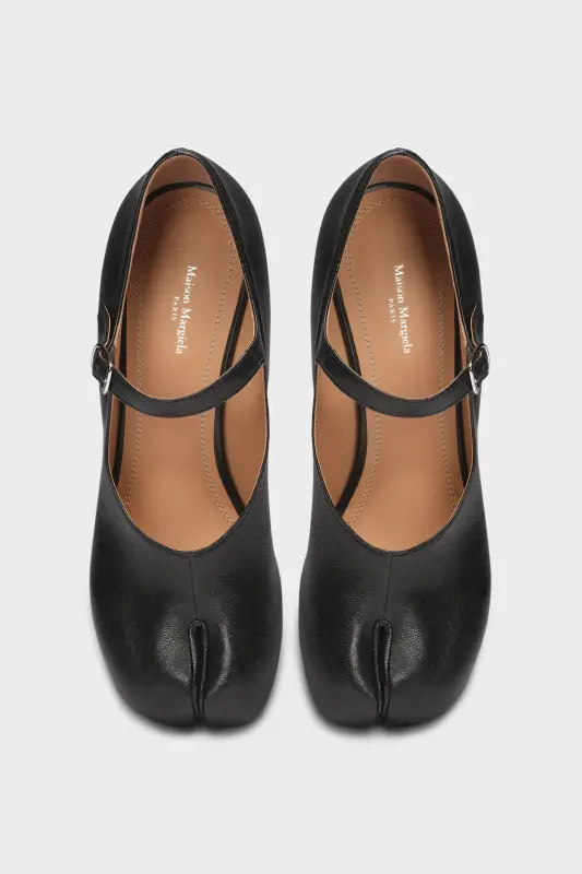 In soft nappa leather with an adjustable front strap, the Mary-Jane shoes feature a 6cm cylindrical heel and the Tabi split-toe, inspired by the traditional 15th century Japanese sock bearing the same name – launched for the Maison's debut collection in 1989. It captures the avant-garde and insubordinate spirit of the Maison and exists as a heritage classic, continually explored through each collection.