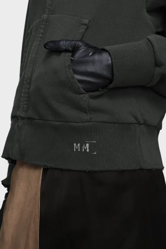 This hooded sweatshirt offers a softer take on a casual staple. Crafted in cotton, its ribbed trims and raw hems suggest wear through time. The discreet ‘MM’ embroidery finishes the piece with the Maison Margiela signature. The four stitches appear at the back; the opposite of a label.